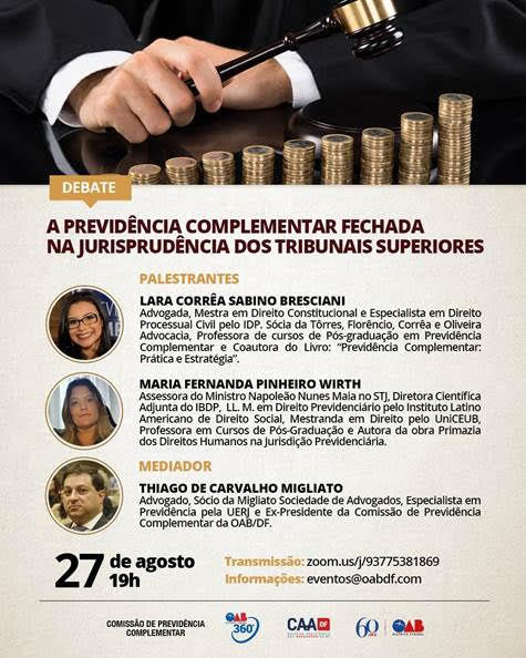 ADVOGADA LARA CORRÊA SERÁ PALESTRANTE NO DEBATE PROMOVIDO PELA OAB/DF: A PREVIDÊNCIA COMPLEMENTAR FECHADA NA JURISPRUDÊNCIA DOS TRIBUNAIS SUPERIORES
